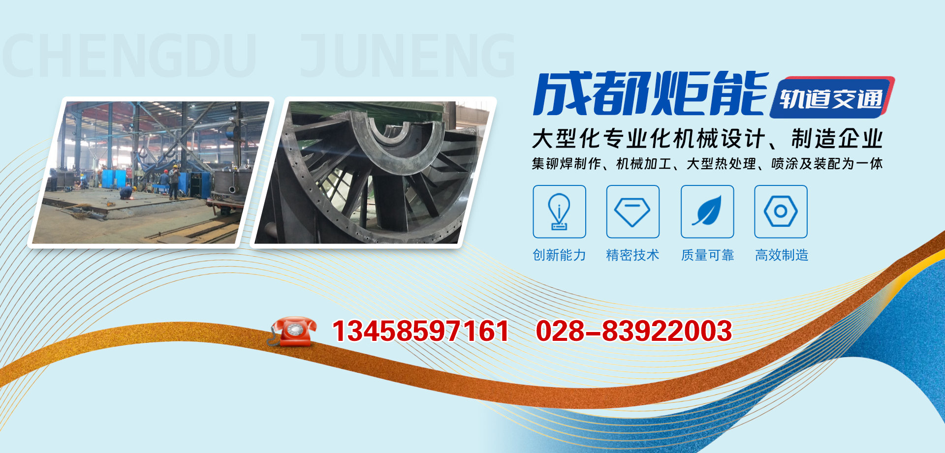 成都炬能軌道交通裝備有限公司位于成都市新都工業東區新工大道860號,位置優越,距成都市區17公里,距京昆高速的新都南站和北站5公里左右,與青白江工業區毗鄰。公司是一家集機器人自動焊接設備、汽車夾具設計與制造、火力發電大型風機制造、鉚焊制作、機械加工、大型熱處理、裝配為一體的大型、專業化機械設計和制造企業。公司屬成都市規模以上企業、成都市模范勞動關系和諧企業、成都市安全標準化建設達標企業。公司目前擁有...